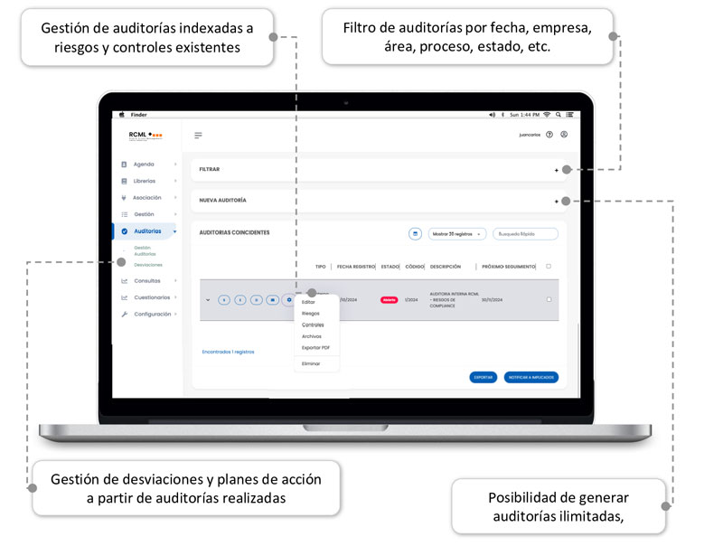 Solución sin límite de usuarios que integra diversos módulos de trabajo para áreas de compliance, riesgos, auditoría y el resto de las áreas operativas